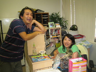 進一はすかさず、ステプラーを隠しにかかって、