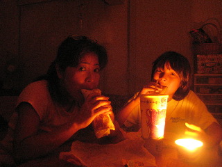 凧べる買って帰ってもまんだ点いとらんで、進一とふたり今夜点かなんだら、