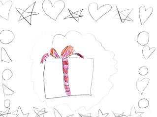 ダデーとマミーにプレデントするで、絵描いてちゅうたら、プレレントの絵をかいたがや。