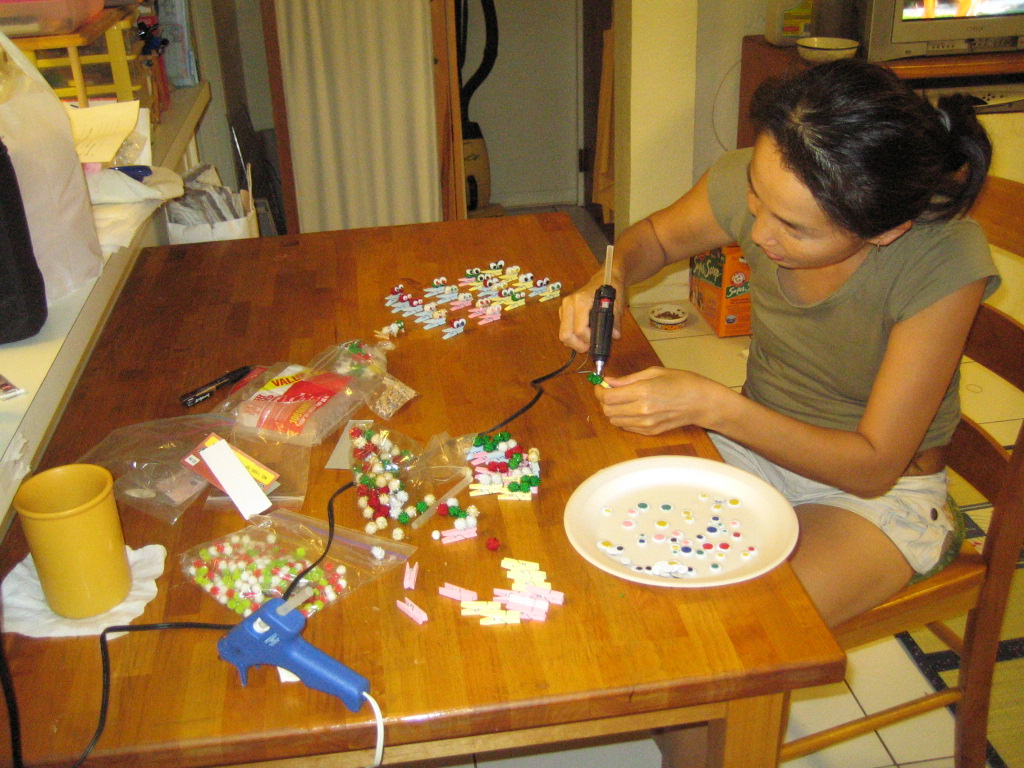 指先をグルーガンでヤケドしながら、がんばるチュバ母。