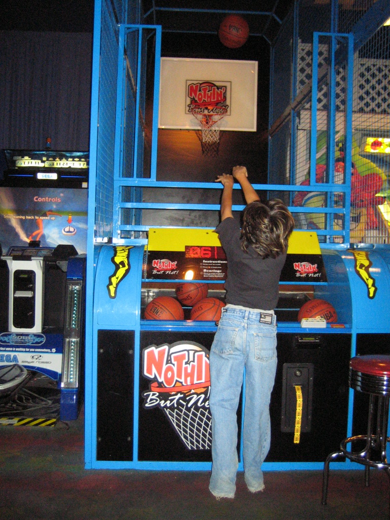 バスケットのボール、重くてワシは2回しか入らなんだ。その他は届かなんだ。