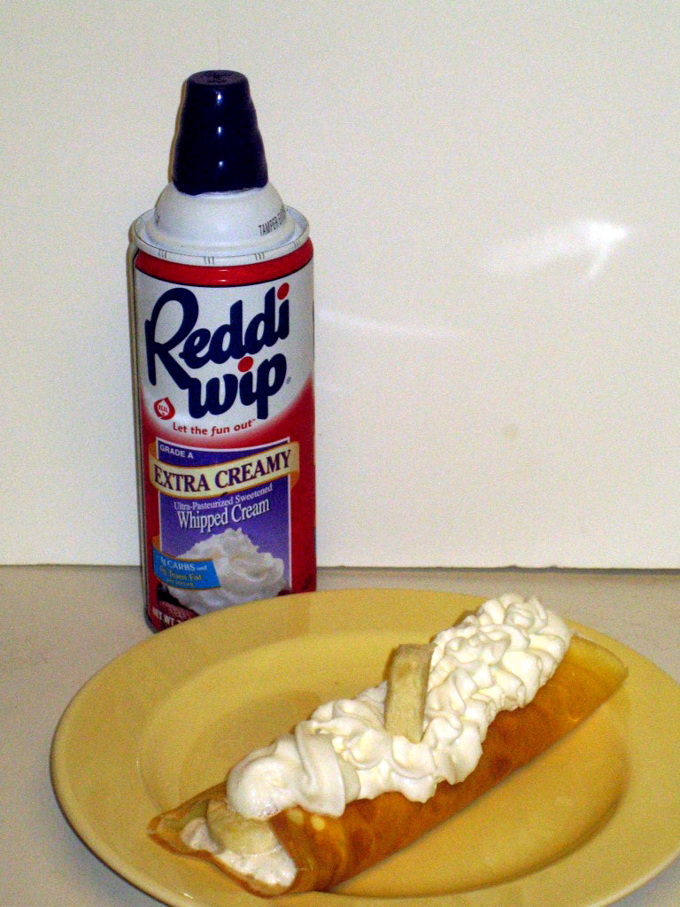進一、以前は皮しか食わなんだのに、今日はバナナクレープにしたら全部食べた。