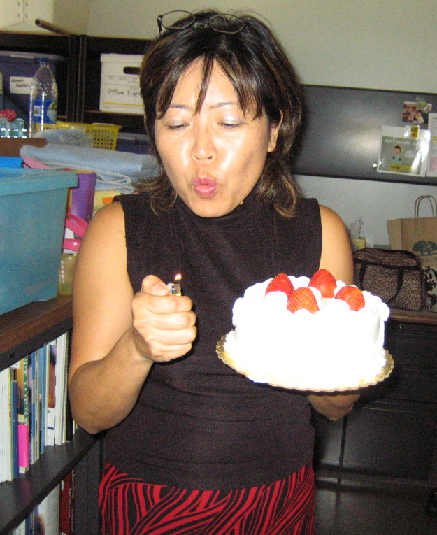 ローソクがにゃーっちいうことで、ぷーにライターを手渡された。数えきれんぐりゃーのローソクおったてらりるより、こっちの方が、なんかNewだらあ。こんな時もつい、無意識に森になっちょる。(腹は油断こいとるし、顔もテッカテカだらあ。)