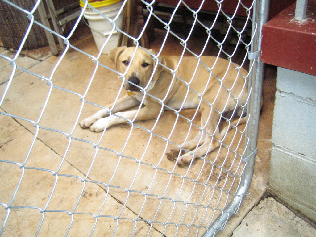 犬のケージの度真ん中だて。こりゃ、困ったでかんわ。