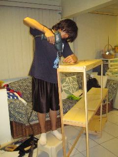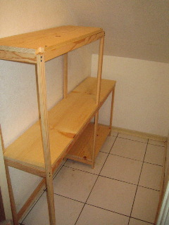 だもんで、ここはいっぱつ棚でもつくって、使いやすくせなかんだらあ。