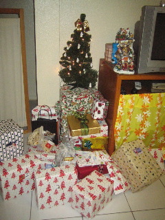 うちのちっこいツリーの回りがプレレントの山。