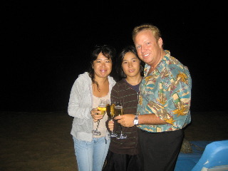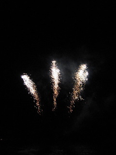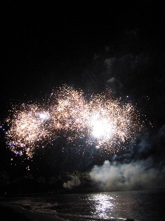 ワシらは、近所のキャハラホテルのビーチに花火を見にいってきたがや。